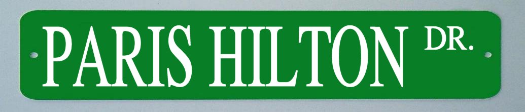 Our street signs measure 4" x 16" with holes drilled on each end for hanging. The signs are made from a Microsurfaced Impact Acrylic so they're weather proof and will not rust if you prefer to hang them outside. Also the corners are rounded for safety. Shipping is $6.95 for up to 3 signs.