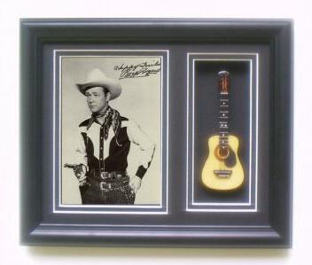 Features a glossy 4" x 6" postcard sized photo.  Also features a detailed miniature guitar.