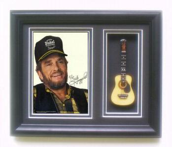 Features a glossy 4" x 6" postcard sized photo.  Also features a detailed miniature guitar.