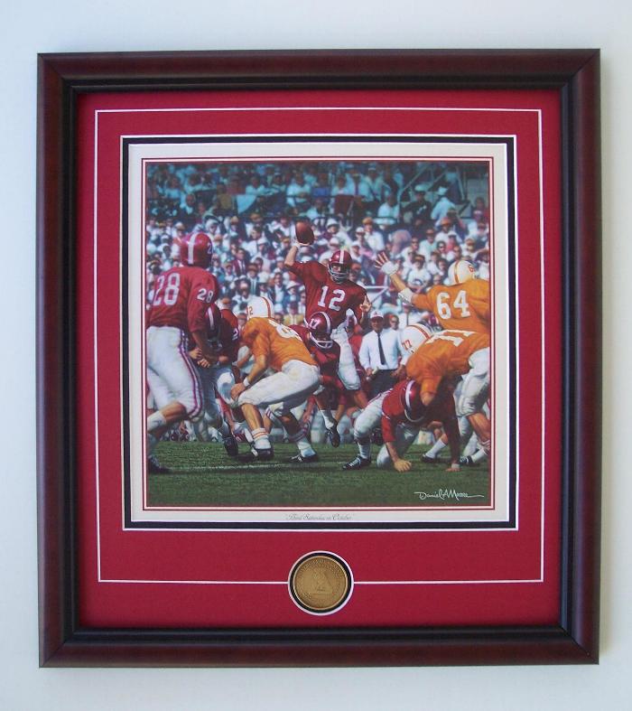 Joe Namath drops back and hits Benny Nelson for a 35-yard TD pass in the second quarter of the 1962 Alabama-Tennessee game. In this exciting Bama win in Knoxville, Namath passed for two TD's and ran for one TD.